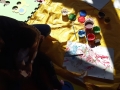 Note di movimento con “Yoga mamma-bebe”, i bambini dopo essere entrati in contatto con il loro corpo si sono divertiti a dipingersi le mani